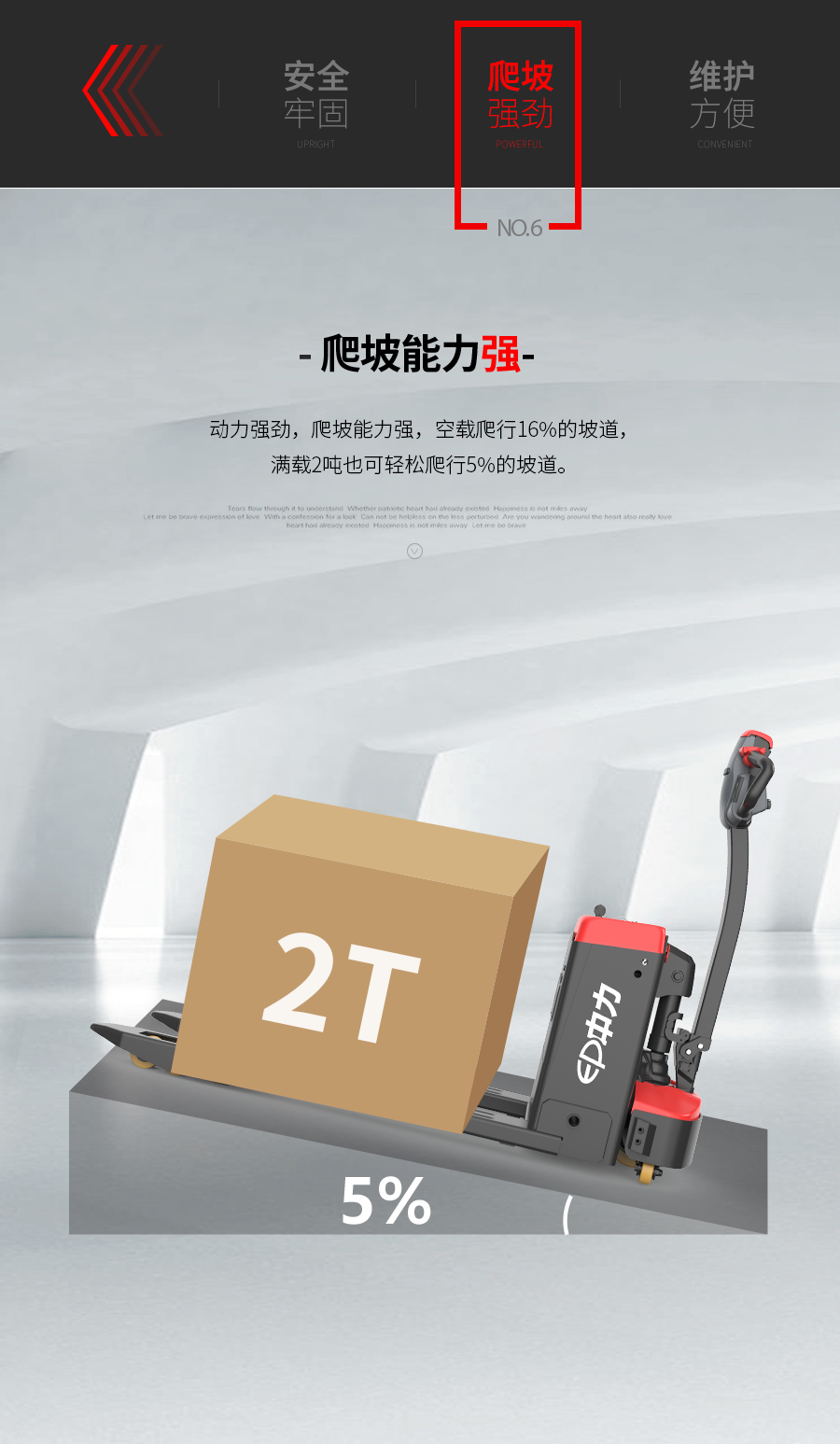 | 5.8 | 最大爬坡度,满载/空载 | % | 5/16 |